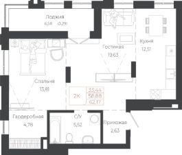 Общая площадь62,17 м²