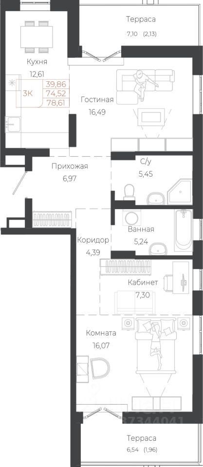 Продаётся 3-комнатная квартира в строящемся доме (Корпус 7), срок сдачи: IV-кв. 2029, общей площадью 78.61 кв.м., на 6 этаже. Новый жилой комплекс расположен по адресу: с. Майма, по ул. Энергетиков.