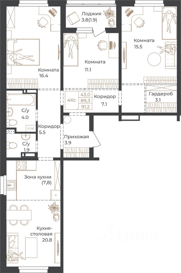 91,2 м²