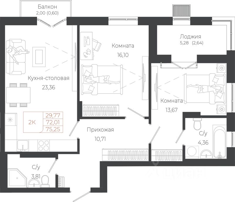 75,25 м²