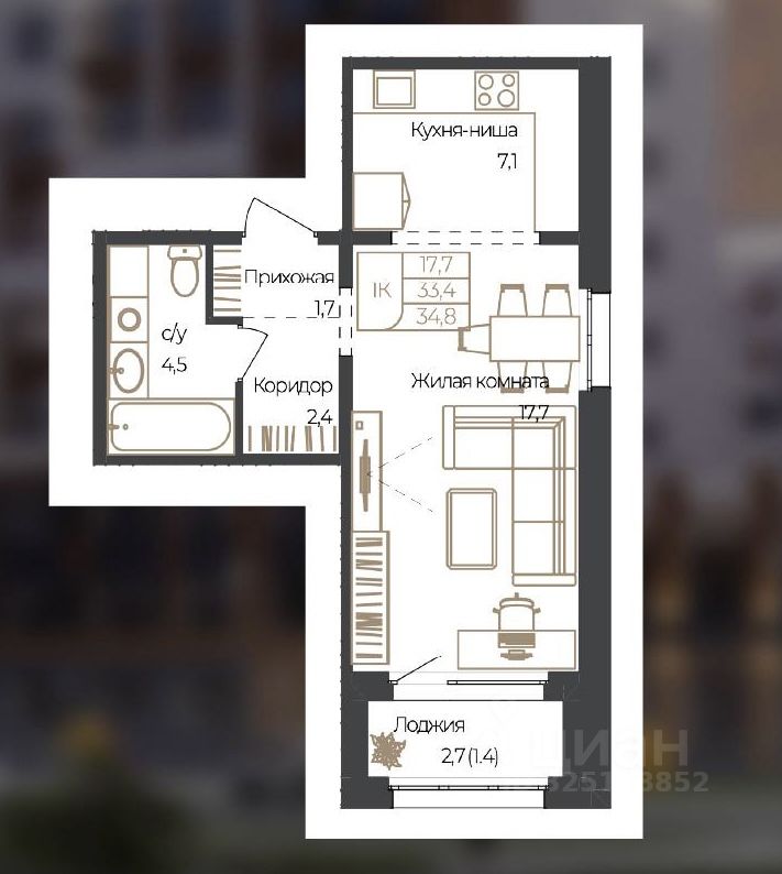 34,8 м²