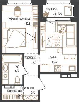 Продаётся 1-комнатная квартира в строящемся доме (Корпус 1), срок сдачи: IV-кв. 2027, общей площадью 38.7 кв.м., на 4 этаже. Новый жилой комплекс "Чуйские кварталы" от группы компаний "УК СЕЛФСТРОИТ" расположен по адресу: с. Майма, по ул. М. Глухарёва.