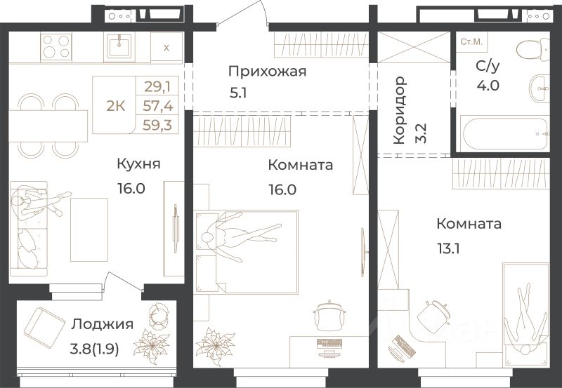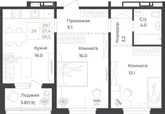 59,3 м²