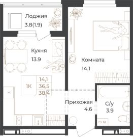 Общая площадь38,4 м²