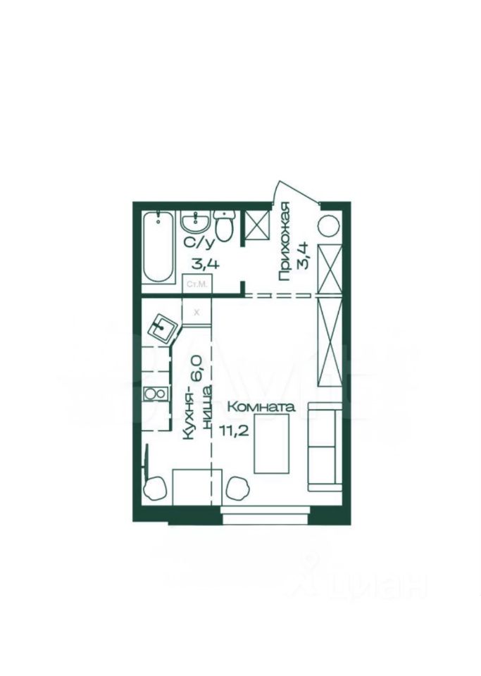 — Площадь квартиpы 24,3 м2. Состояние: штукатурка стен , стяжка пола, электрика по квартире , разводка отопления с установкой радиатора.