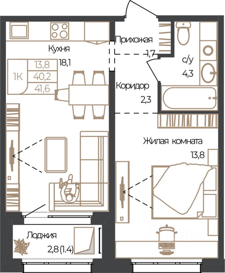 Продаётся 1-комнатная квартира в строящемся доме (Корпус 2), срок сдачи: IV-кв. 2027, общей площадью 41.6 кв.м., на 1 этаже. Новый жилой комплекс "Чуйские кварталы" от группы компаний "УК СЕЛФСТРОИТ" расположен по адресу: с. Майма, по ул. М. Глухарёва.