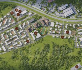 Благоустройство. Закрытая территория без машин, озеленение, детские и спортивные площадки, пешеходные дорожки, зоны отдыха.