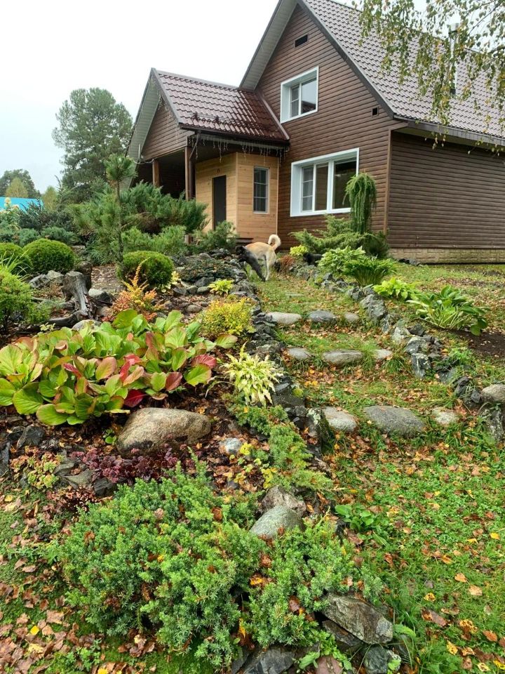 • Ландшафт: Ухоженная территория с декоративными растениями и аккуратными грядками (около 3 соток).