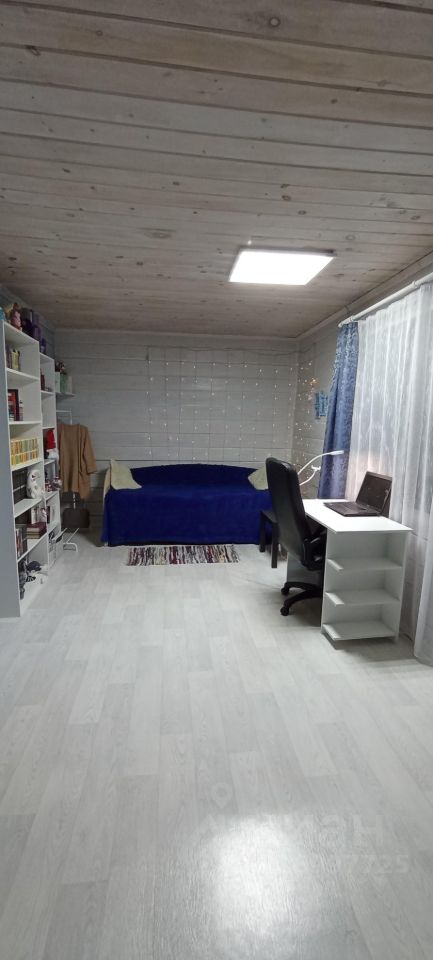 Потолок в доме обшит евровагонкой из кедра.