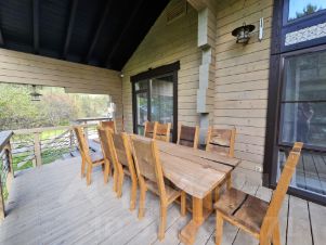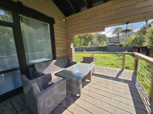 -На террасе предусмотрены удобные лежаки и столик для отдыха, где можно наслаждаться чашкой чая или освежающим напитком в окружении природы.