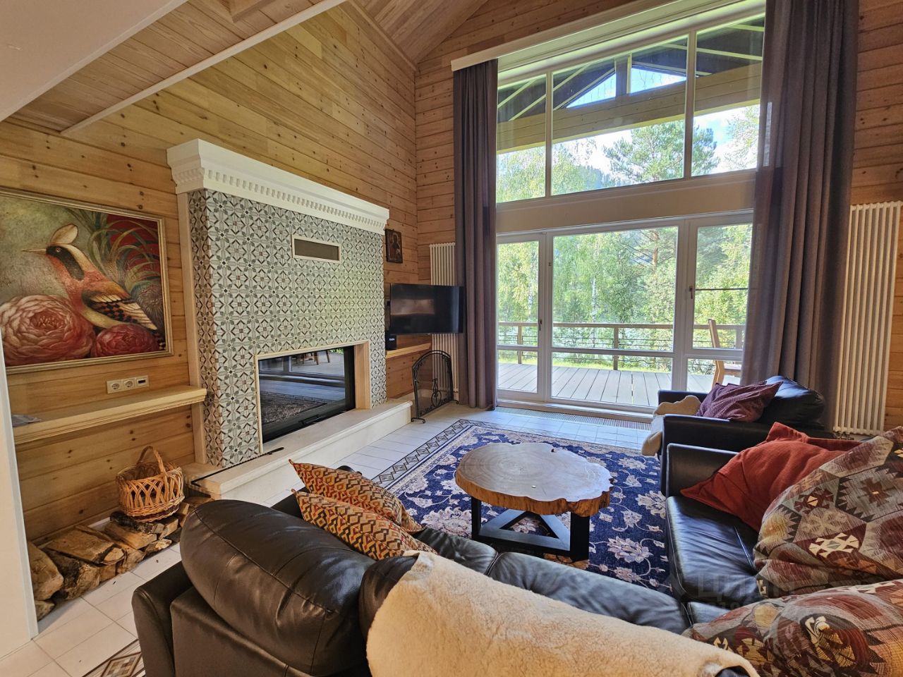 Идеальная планировка: На 1-м этаже расположена просторная кухня-гостинная с действующим камином, панорамными окнами и шикарным видом на природу, 2 спальные комнаты, 2 сан.узла, гардеробная, котельная. Из кухни-гостинной и спальных комнат есть выход на террасу.
