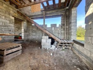 Дом построен из пеноблоков. Свободная планировка комнат. По проекту пристроен гараж со смотровой ямой и погребом.