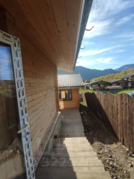 Терраса: Выполнена из прочной и долговечной лиственницы идеальное место для утреннего кофе или вечерних посиделок с видом на горы.