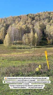 С участка открывается потрясающий вид на село и величественные горы, а вблизи расположен смешанный лес, где вы сможете наслаждаться прогулками. Всего 21 километр отделяет вас от столицы Республики Алтай — города Горно-Алтайска, а знаменитый пятизвездочный отель "Алтайрезорт" находится всего в 20 километрах.