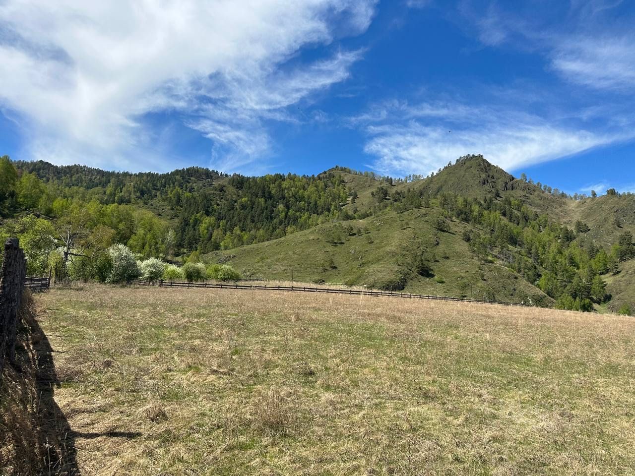 Рядом протекает река Киндерля, находится дикий яблоневый сад. Участок находится в окружении гор с цветущим маральником по весне. Весной все горы розовые.