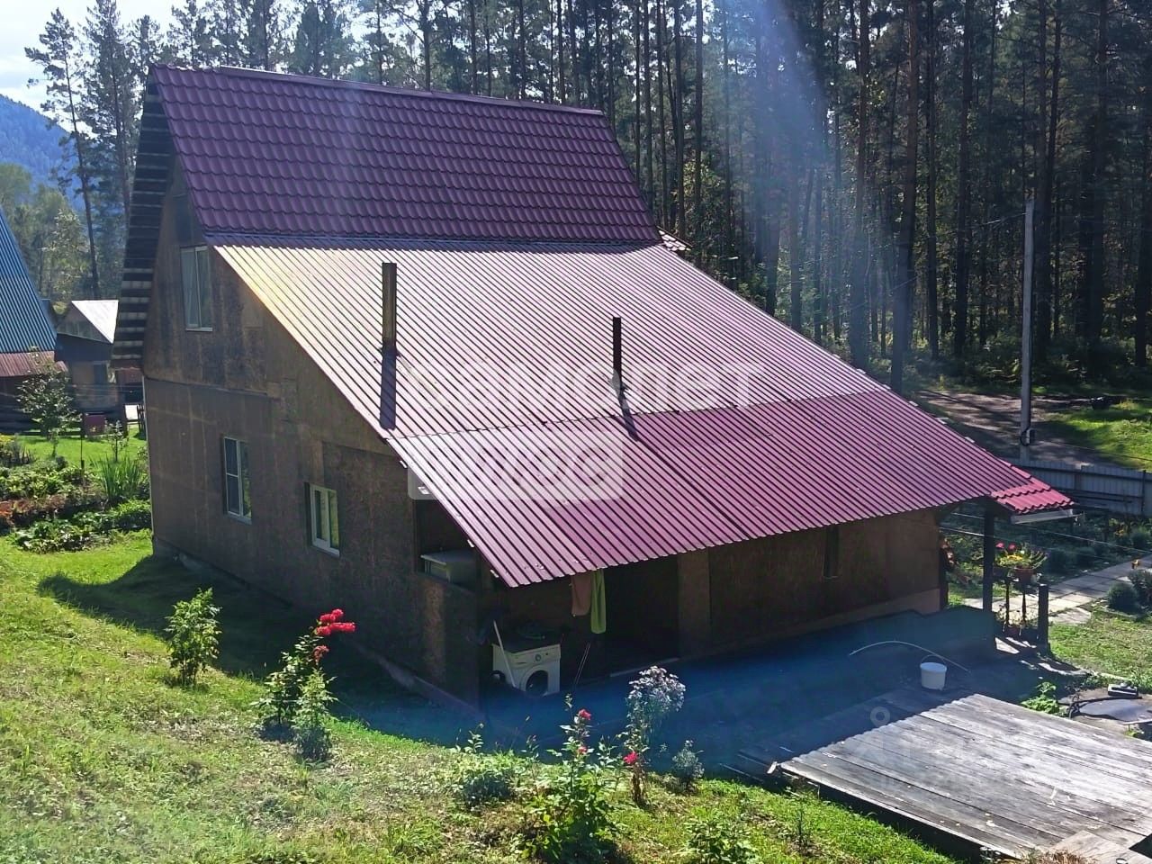 Идеальное расположение: Участок утопает в зелени, с трех сторон окружен лесом, создавая атмосферу уединения и спокойствия. Всего 300 метров через сосновый бор и вы на берегу могучей реки Катунь! А до популярного горнолыжного комплекса Манжерок всего 25 км.