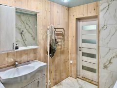 Дом построен из деревянного бруса. Утеплен минватой и обшит металлосайдингом. Площадь дома составляет 52,1 кв.м. Внутри свежий, качественный ремонт.