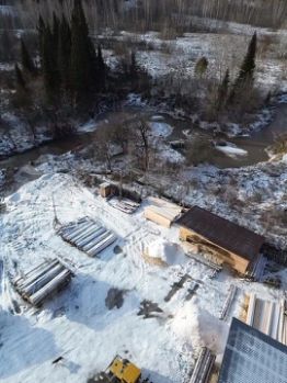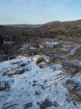 На территории есть уютный домик и две действующие дисковые пилорамы - подходящее место для отдыха, работы и уединения.