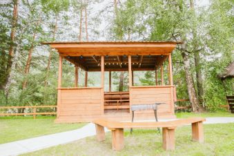 Большая терраса (40 м²) и уютная беседка с видом на реку.