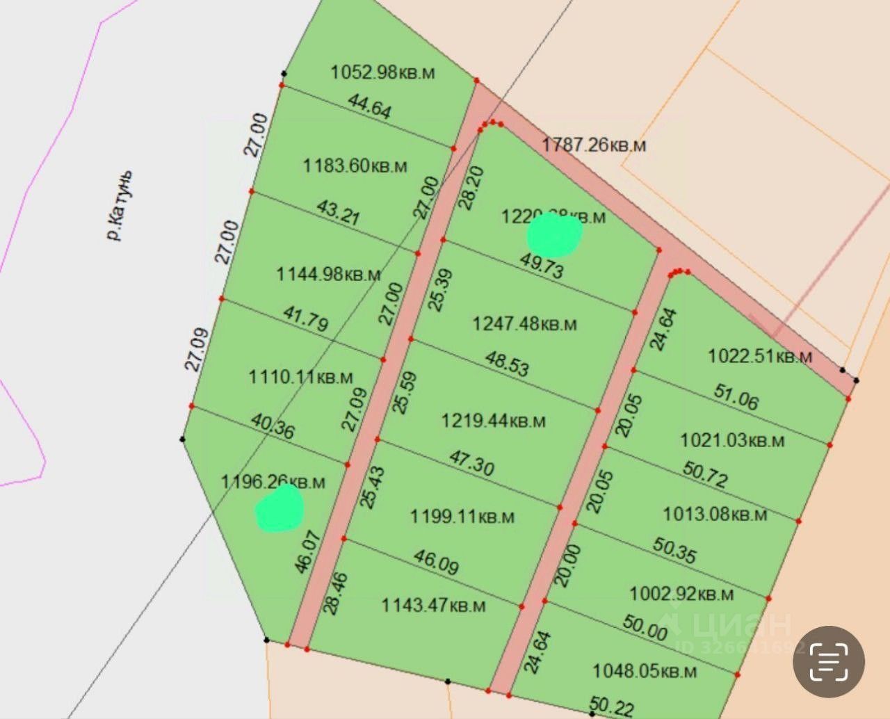 2 га размежёваны, проезды выделены, 3 линии по 5 участков: