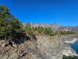 Участок наполовину абсолютно ровный, а наполовину имеет незначительный уклон в сторону Катуни, который заканчивается живописным скалистым берегом с соснами и затонами, в которых можно организовать собственный причал.