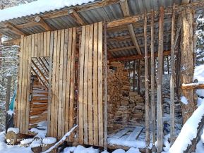 Есть хозпостройки: дровник, хозблок, сруб бани.