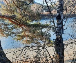 Собственный выход на пляж: Ровный участок с пологим спуском к песчаному берегу Катуни. На территории — березы, сосны, яблони, создающие уютную тень.
