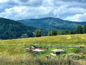 С участка открывается красивый вид на горы и село. Вдоль участка проходит столб ЛЭП, вода централизованная, есть возможность подключить газ.