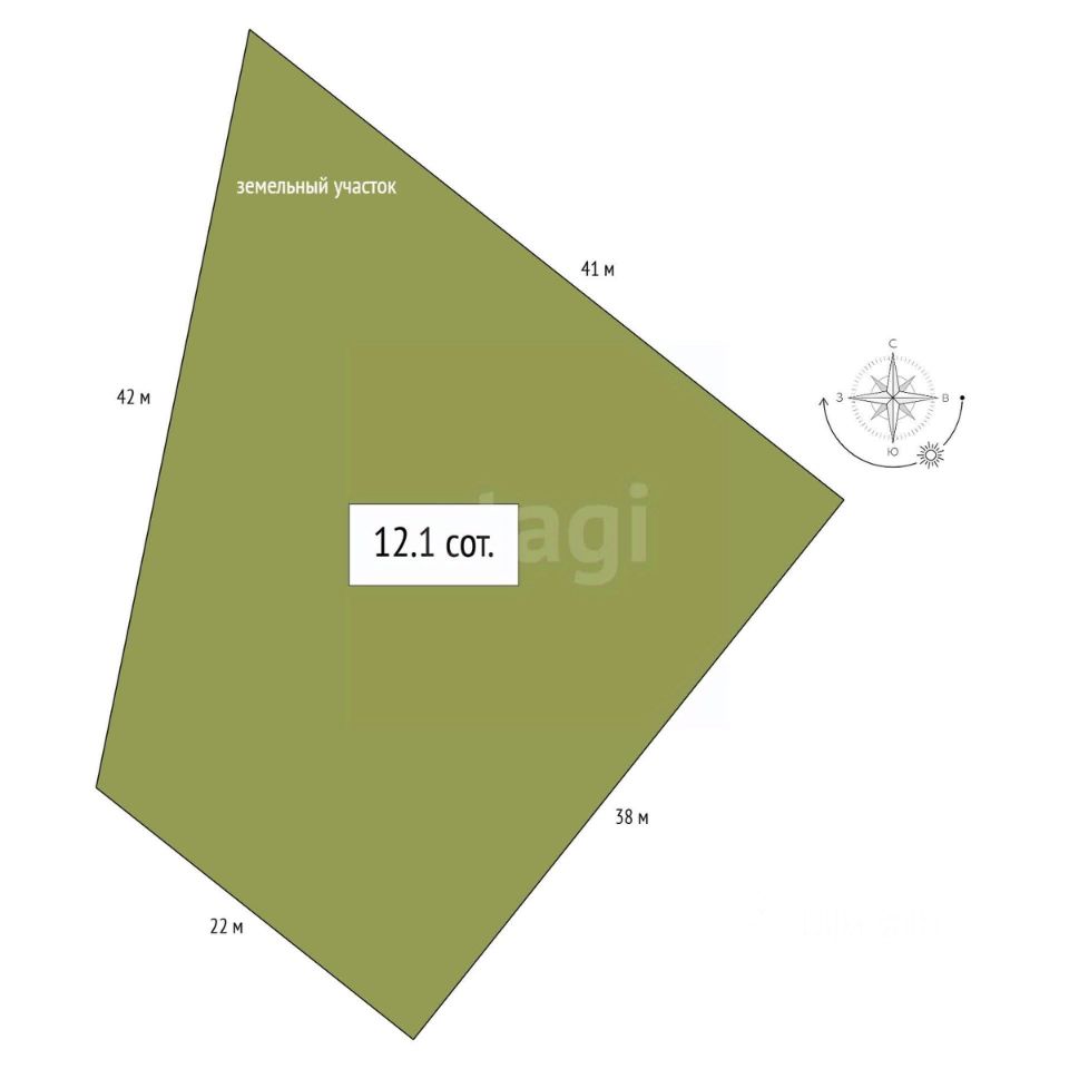 Общая площадь земли - 12,1 соток.