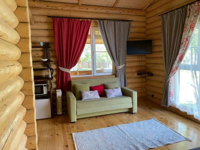 В каждом домике ОДНА комната, есть душ, унитаз, горячая и холодная вода, обогреватель, тепловентилятор. Веранда полностью застеклена, не отапливается . На открытой веранде имеется всё необходимое для приготовления еды (микроволновка, плитка, чайник, холодильник, посуда, раковина). В домике есть книги для чтения, а ещё настольные игры, если вдруг плохая погода отобьёт у вас желание выходить на улицу Есть мангальная зона, мангал, костровище, качеля.