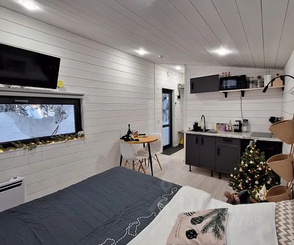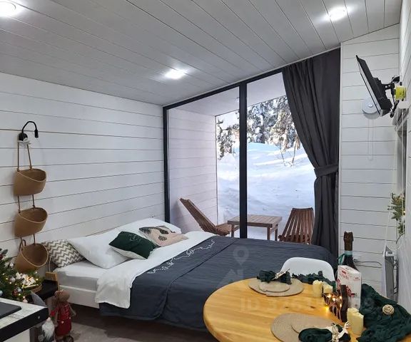 Спальня с двуспальной кроватью с панорамным видом на озеро и лес, оборудованная кухня: холодильник, чайник и столовые предметы, санузел с душевой, терраса, TV, фен, полотенца, Wi-fi. Размещение с любыми животными запрещено! Кухонной зоны в данной категории номеров нет.