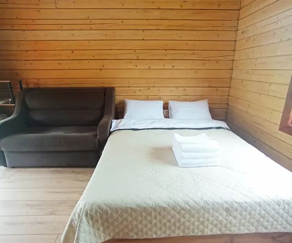 Благоустроенный барнхаус. Двуспальная кровать, диван, кухонный уголок с электроплитой плитой и микроволновкой, холодильник, чайник, горячая и холодная вода, санузел с душем, кондиционер. Балкон с лежаком и уличным столиком. Заезд с 14-00, выезд до 11-00.