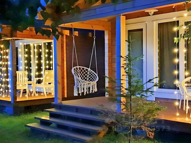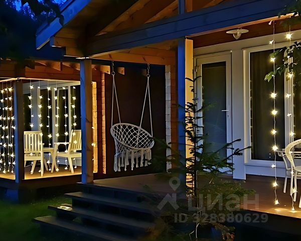У дома - своя большая терраса 10м2 с вечерней подсветкой и верхним освещением, качелью-коконом и мебелью для отдыха и перекуса на свежем воздухе.