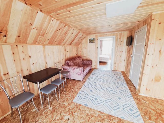 Трёхкомнатный номер на втором этаже частного дома с отдельным входом с улицы, кухней и большой террасой с видом на горы. Сдается как полностью этаж для одной семьи, так и по номерам отдельно. Интерьер номера: все номера отделаны натуральным деревом, в номерах двуспальная кровать (кровать раздвигается), постельное бельё + полотенце, прикроватные тумбочки, комод, кресло кровать, телевизор и раскладной диван (доп. Место), wi-fi. Санузел: холодная, горячая вода, душевая кабина, унитаз, раковина с тумбой, стиральная машина-автомат, зеркало, фен, жидкое мыло, шампунь, гель для душа. Кухня полностью оборудованная всем необходимым для приготовления пищи и ее хранения, телевизор.