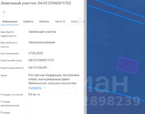 Земельный участок местоположение: Российская Федерация, Республика Алтай, муниципальный район Майминский, с. Майма. Площадь участка 63 кв.м, кадастровый номер 04:01:010406:1723, права на земельный участок неразграниченная собст...